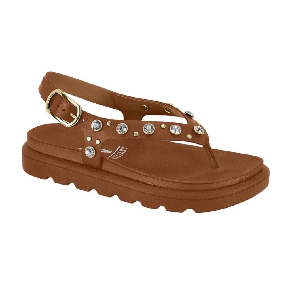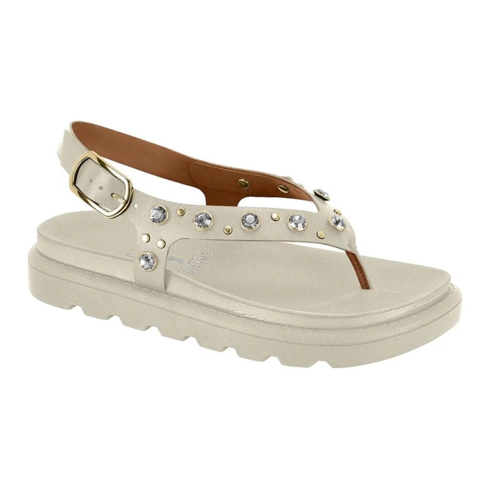 Sandália Papete Feminina Dedo Pedraria Vizzano combina sofisticação e conforto. Seu design flatform oferece estabilidade e eleva o visual. Adornos dourados proporcionam um toque elegante e moderno. Sendo ideal para quem busca estilo aliado à praticidade em ocasiões casuais ou eventos especiais.